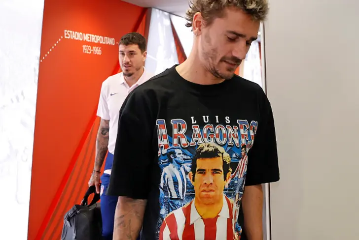 Cuando Griezmann logró igualar a Aragonés, sorprendió a todos al siguiente partido apareciendo en el Cívitas Metropolitano con una remera sobre el histórico jugador y entrenador colchonera. “Yo llevaba ese pensamiento y guiño hacia él hace dos meses, pedí la camiseta al chico que las hace en Francia y la hizo y nos íbamos acercando y le pedí que la mandara porque estaba bien, pero la camiseta no llegaba y cuando meto el gol de igualar llegaba el partido a los cuatro días, le pedí me haga una nueva porque la otra no llegaba y le pedí a un amigo que la vaya a buscar a París”, contó el delantero francés.