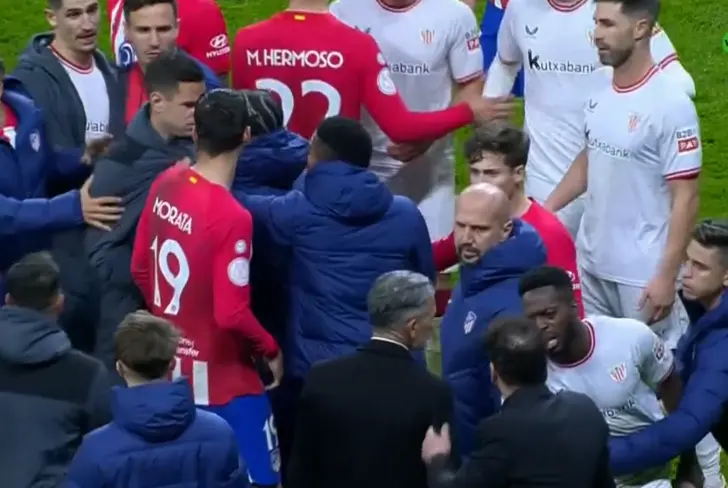 Sobre el final del partido el colegiado pitó un penal a favor del colchonero, pero el VAR determinó que existía un offside previo de Morata en la jugada y le ahogó la posibilidad de empatar el partido a Antoine Griezmann desde los doce pasos. Una vez terminado el encuentro hubo un tumulto de jugadores que comenzó Rodrigo De Paul y en el cual terminó metiéndose Simeone, demostrando el caliente clima que habrá en el partido de vuelta.