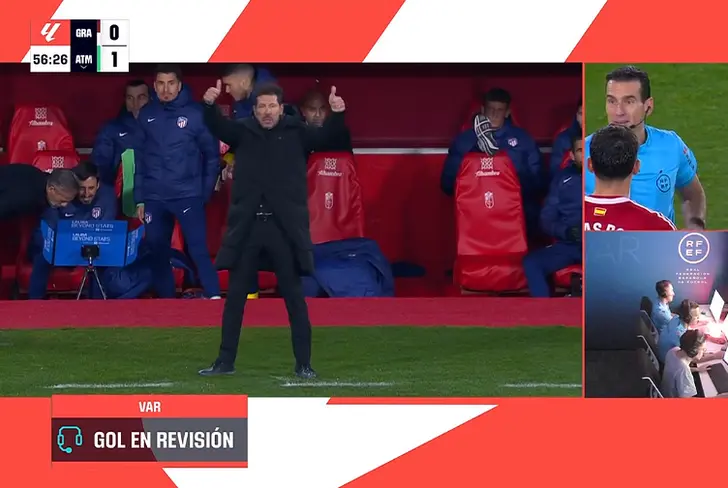 La reacción desde el Simeone fue imperdible con los dos dedos pulgares hacia arriba indicando al árbitro que era gol y que su jugador estaba habilitado. El colegiado no lo observó, pero el deseo del entrenador se terminó cumpliendo cuando el VAR dio el visto bueno al gol de Álvaro Morata. El Atlético se pone en ventaja jugando de visitante después de mucho tiempo.