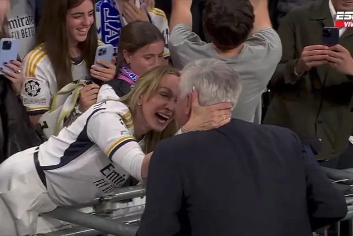 Carlo Ancelotti, acostumbrado a su perfil bajo y de total frialdad, festejó un nuevo título de la Champions League junto a su esposa Mariann Barrena. Lo primero que hizo Carletto cuando el árbitro del encuentro, Slavko Vincic, puso el pitazo inicial fue saltar a las tribunas en la que estaba ubicada su mujer. El entrenador decidió darle un gran beso lleno de amor y felicidad por lo conseguido. Luego festejó junto a los jugadores cuando Nacho alzó la Orejona número 15 del Madrid al grito de "campeones, campeones".