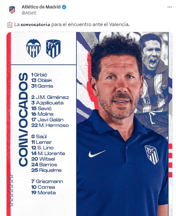 Por su parte el entrenador del Atlético de Madrid, Diego Simeone menciono lo siguiente: ‘Siempre miro las cosas positivas y está la presencia de Baraja, una persona de club, lo ha hecho muy bien en un momento muy complicado y está trabajando con muchos jóvenes. A partir de la presencia de Baraja, encontraremos un rival con entusiasmo, muy complicado y trataremos de llevar el partido a donde queremos’.