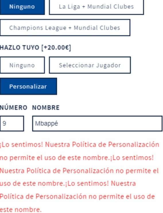 Desde el lado blanco, para no generar falsas expectactivas en los hinchas, tomaron una medida en sus locales de ropa. En la página web del Real Madrid, no les permiten por su nombre en las camisas. Al intentar hacerlo, sale un mensaje con letras rojas que dice: “¡Lo sentimos! Nuestra política de personalización no permite el uso de este nombre”.