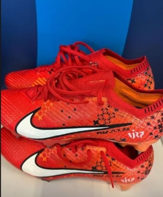 Las Nike Mercurial Vapor 15 Dream Speed 7, es la marca de botines del jugador, la cual nos dimos a la tarea de buscar en las diferentes páginas de venta, y el costo estimado de este par de la marca americana oscila los 80 euros, pero en su mejor versión puede rondar los 120 euros, siendo disponibles en azul cian, negro, blanco y en la tradicional versión naranja.